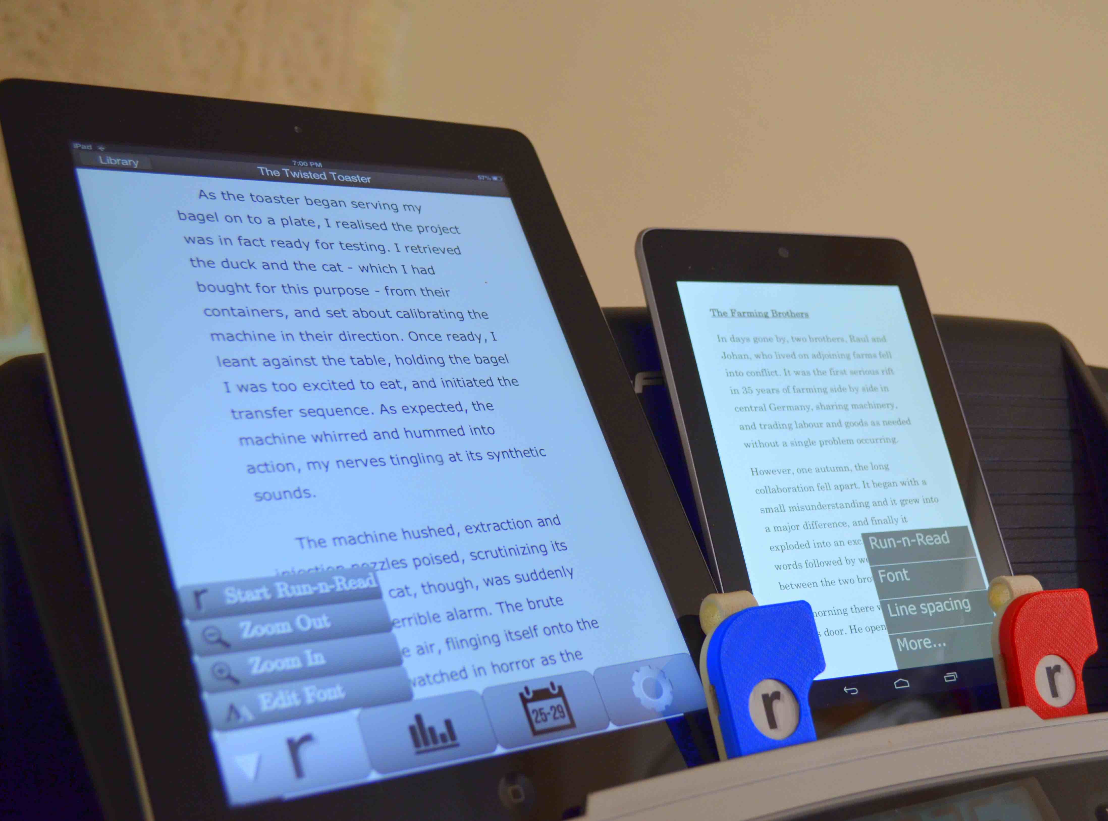 A clip-on wearable that helps you read on your tablet while running on the treadmill.